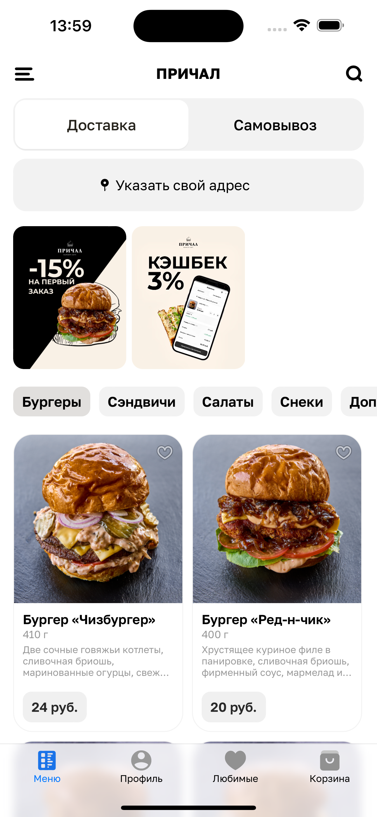 Хрустящее куриное филе в панировке, сливочная бриошь, фирменный соус, мармелад из красного лука, чеддер, салат айсберг, свежий томат